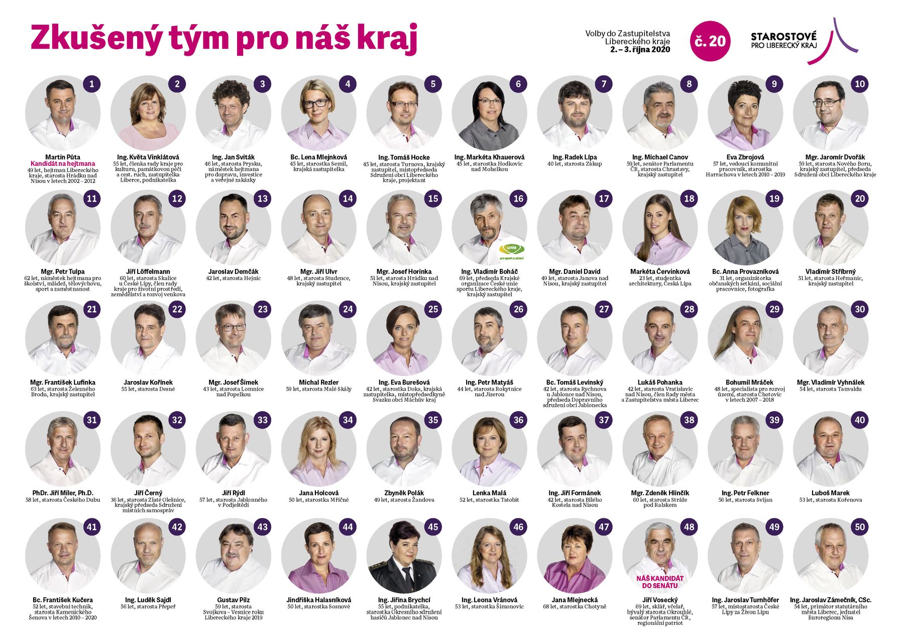 Přijďte tento pátek nebo sobotu ke krajským volbám a dejte hlas našemu zkušenému týmu. Volte číslo 20!